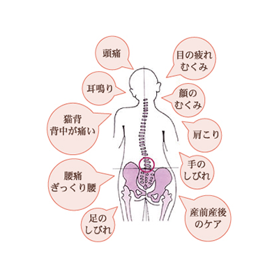 骨格に歪みが生じると神経圧迫が起こり、脳から身体への指令や情報伝達がスムーズに行われなくなります。その結果、スタイルが崩れだけでなく、肩こり・腰痛・頭痛・生理痛などの痛みが出たり基礎体温の低下、ホルモンバランスの乱れ、肌トラブルなどにも繋がります…。