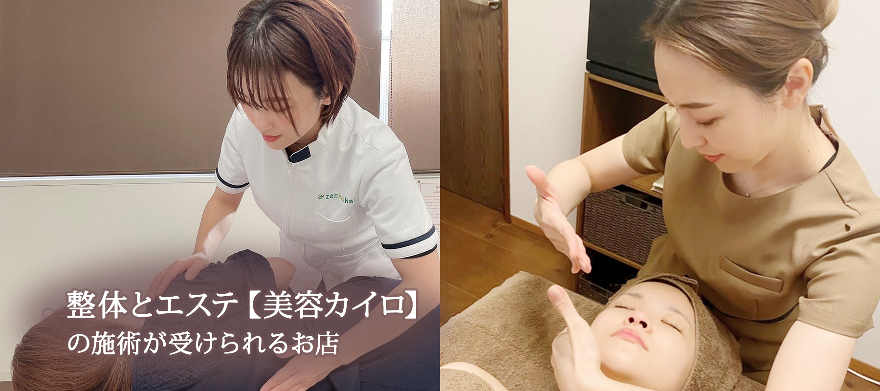 美容サロンでは、カイロプラクティックで骨格、筋肉の歪みを修復・調整して『オールハンド』でリンパや血流を活性化し、皮膚のくすみや汚れを取り除いていきます。